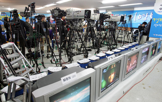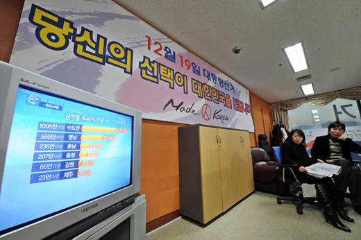 ▲ 제17대 대통령선거 투표종료를 30여분 남긴 19일 오후 중앙선거관리위원회에 마련된 선거종합상황실에서 각 언론사들이 분주하게 보도준비를 하고 있다. /뉴시스