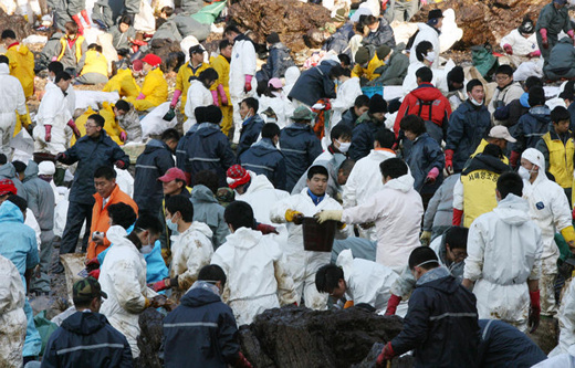 ▶ 최근 ‘일본 나홋카호 중유유출사고’가 언론보도를 통해 알려지면서 사람들이 힘을 합치면 ‘서해안을 살릴 수 있다’는 희망이 생겼다. 1997년 1월 2일 러시아 선적 나홋카호가 후쿠이현 앞바다에서 두 동강 나면서 드럼통 3만개 분량의 난방유가 후쿠이, 이시카와, 아키타현 등 무려 9개 현으로 퍼졌다. 당시 일본 정부와 전문가들은 향후 5년동안 바다를 살릴 수 없다고 낙담했다. 하지만 소식을 접한 국민 30만명이 전국 각지에서 몰려들어 양동이와 국자로 중유를 퍼내며 사고난지 2개월 반만에 기적적으로 바다를 되살렸다.