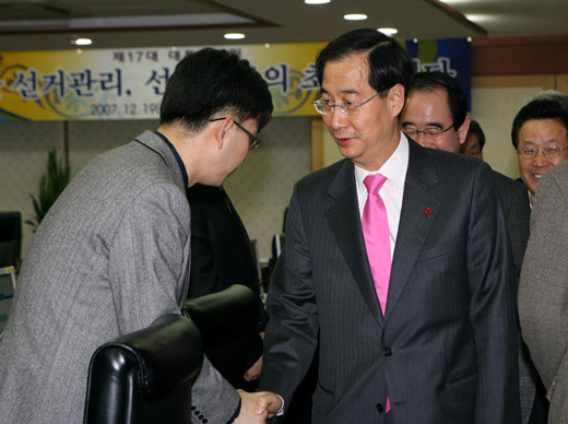 ▲ 한덕수 총리가 19일 오후 서울 세종로 정부중앙청사에 마련된 제17대 대선 투개표지원상황실을 방문, 직원들을 격려하고 있다. /연합뉴스