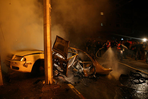 팔레스타인 공습 피격, '뼈대만 남은 자동차'