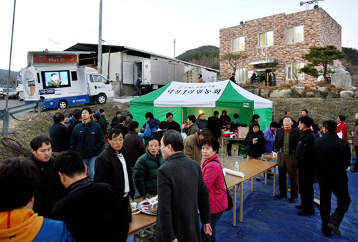 ▲ 19일 이명박 후보의 고향인 경북 포항시 흥해읍 덕성1리 덕실마을 주민들이 마을회관 앞에 모여 개표시간을 기다리고 있다. /연합뉴스
