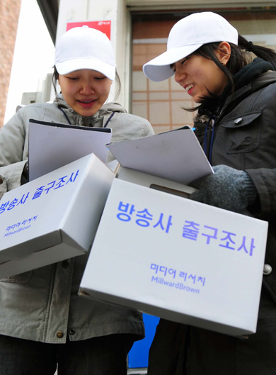 방송사 출구조사 벌이는 조사원들