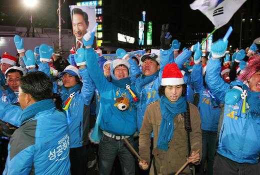 환호하는 이명박 후보 지지자들
