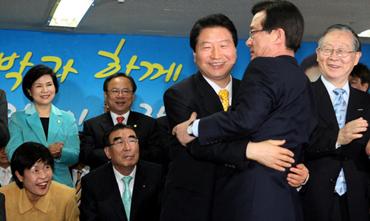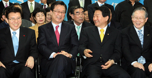 결과가 발표되자 환호하는 한나라당
