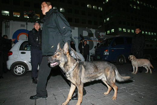 한나라당 당사에 등장한 폭발물 탐지견