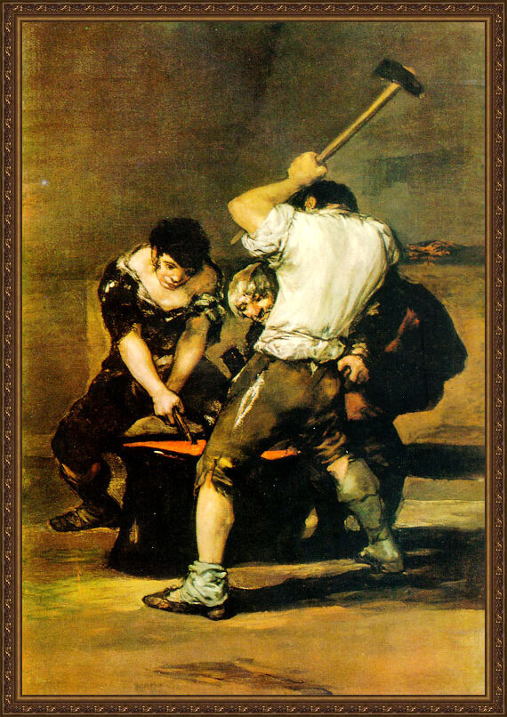 모티브로 한 일련의 작품 중의 하나이다. 노동층의 다이내믹한 인간 생활의 본질적인 측면을 추구한 것이다. 불에 달궈진 빨간 쇠를 모루 위에