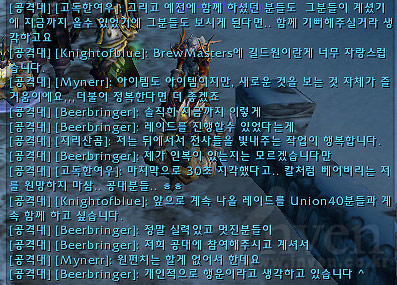 와우를 즐기는 직장인이나 라이트유저의 비애(?)를 많이 접하게 되는데 Union 40 공격대원을 만나보면서 자신이 즐기려는 컨텐츠를 대한 뚜렷한 의지만 있다면 시간, 인원등의 장애물들도 문제될 것이 없다는 것을 느끼게 되었다.