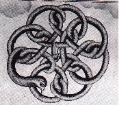 [그림] 쿤달리니는 "뱀"의 형상이며 "불타는 뱀-serpent fire"로 불리워지며 "코브라"로 상징된다. 비쉬누의 이미지에서 보는 바와 같이 신성의 구현은 완전하게 만개된 뱀의 영상과 일치한다. 피조물이 신이 된다고 하는 신비영성의 중심에 놓여진 "뱀"의 정체에 관한 계시는 성경에 있어서 "죄"의 기원을 의미한다.