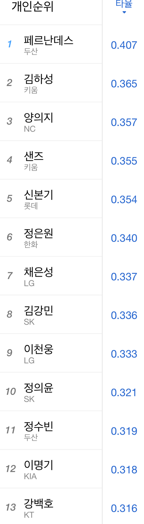 - 타율