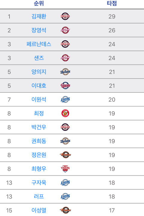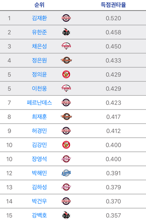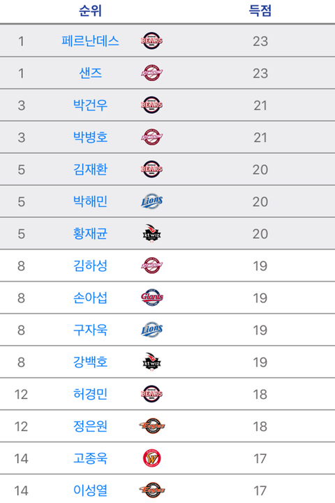 박건우 뭔데 득점 1위여