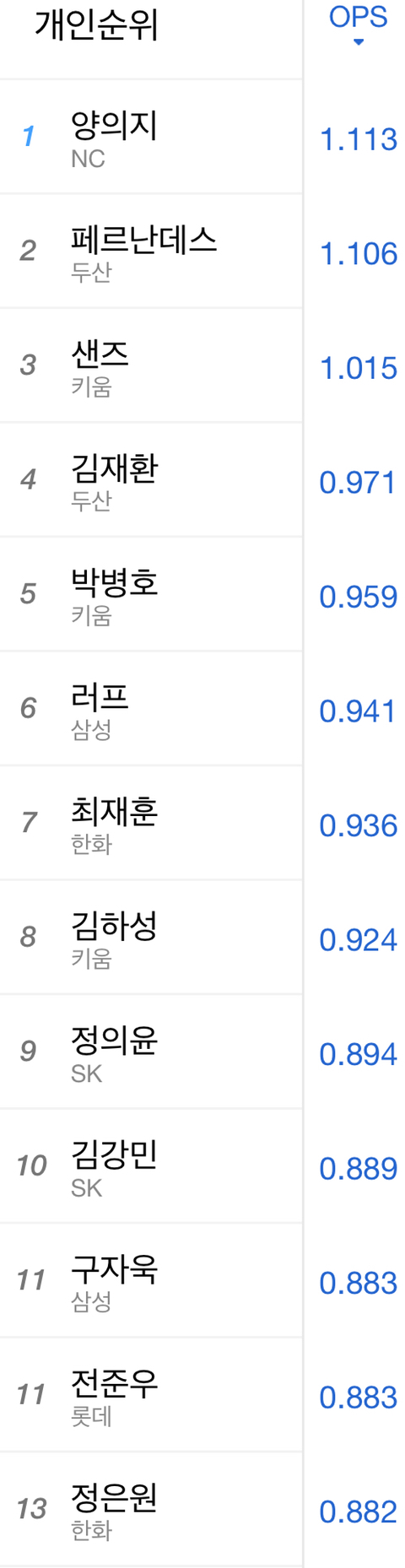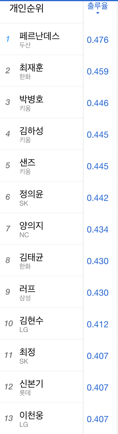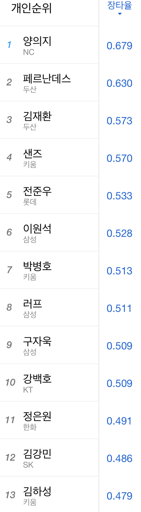 다음편은 팀순위~