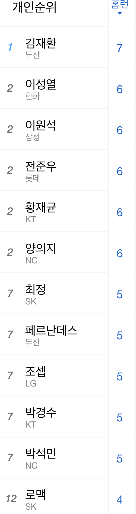 1위 김재환*, 페르난데스