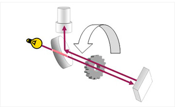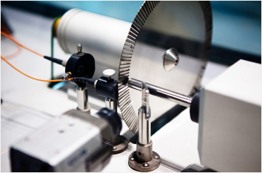 톱니바퀴 틈으로 빛을 통과시켜 되돌아 오는 빛을 측정해