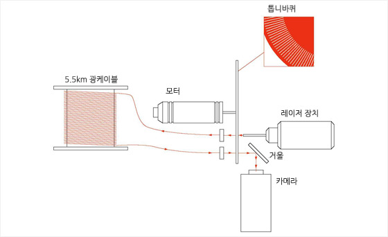 빛의 이동 거리를 늘이기 위해 5.5km의 광섬유를 사용했다.