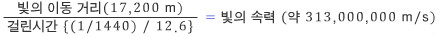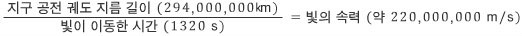 차이로 나눠 빛의 속력을 구했다. | |