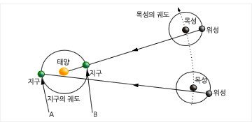 공전궤도 지름 길이를 A, B지점에서 얻은 관측 시간의