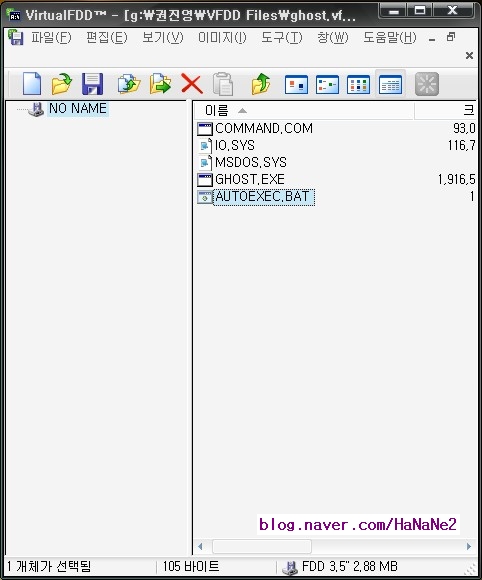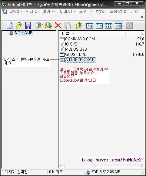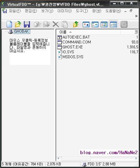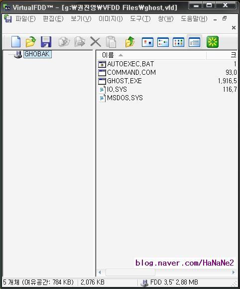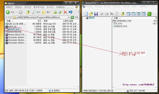 (다른 방법으로는, 만들어진 ghost.vfd 파일을 따닥, 실행 클릭, 확인 클릭.)