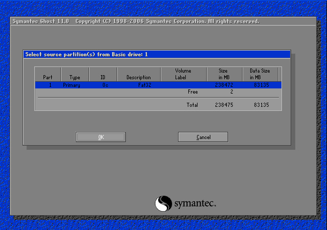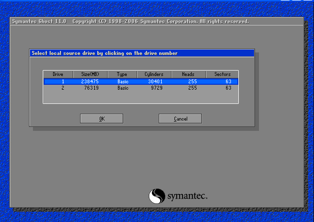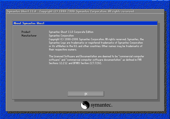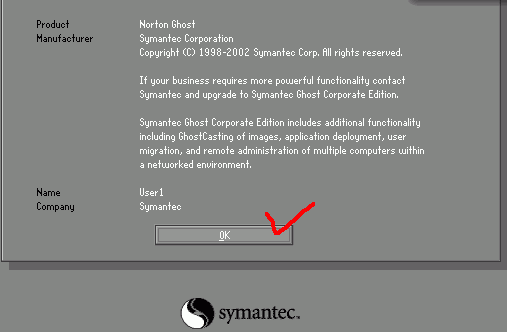 2. 고스트 부팅드스켓으로 부팅한 첫 화면입니다. OK 버튼을 클릭하세요.