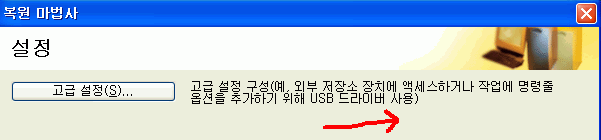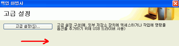 7. 백업 마법사가 실행되면서 고급 설절 창이 실행되면 다음 버튼을 클릭하세요. 고급 설정은 USB 메모리를 이용한 부팅 방법 등을 이용할 때 사용하게 됩니다.
