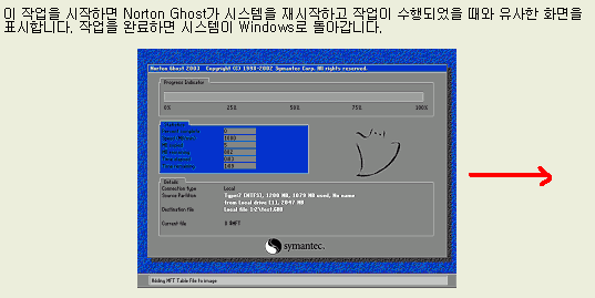 작업이 끝나면 바로 재부팅이 됩니다.(ghost 옵션 -rb)