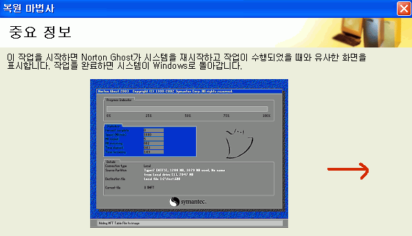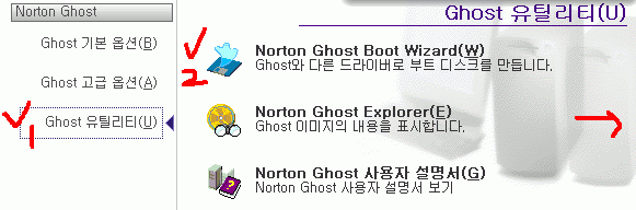 Ghost 유틸리티 - Norton Ghost Boot Wizard - 다음 버튼을 클릭하세요.
