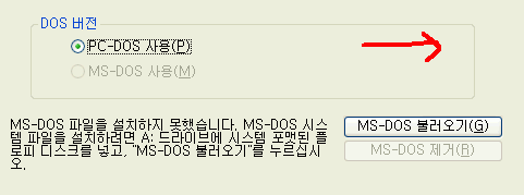 17. 프롬프트(도스)사용하게될 설정을 하게되는데 WinXP에서 사용하실 것이므로 PC-DOS 사용의 기본값으로 다음 버튼을 클릭하세요.