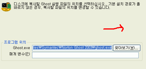 18. 고스트 실행파일의 경로를 지정해주는데 고스트를 설치했을 때 기본값으로 설치를 하였으니 다음 버튼을 클릭압니다, 만일 고스트를 다른 드라이브에 설치가 되었다면 찾아보기 버튼을 클릭하여 고스트가 설치된 실행파일을 클릭하여 주면 됩니다.