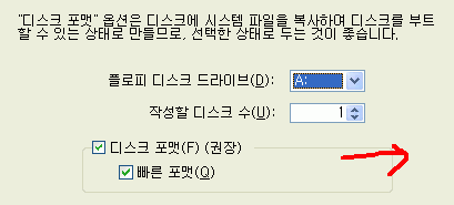 19. 플로피 디스켓을 A드라이브에 넣으시고 빠른 포맷이 선택된 상태로 다음 작업을 진행하세요.