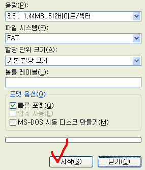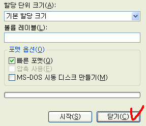25. 포맷이 끝났으니 닫기 버튼을 클릭하세요. (만일 USB 장치를 지원하는 부팅디스켓을 만들게 되면 부팅디스켓을 한장 더 준비하여 마법사의 지시에 따르면 됩니다.)