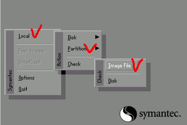 Disk는 디스크로의 복사할 때 사용하는옵션이며 Check는 백업된 고스트 파일의 오류를 검사할 때 사용하는 옵션 메뉴 입니다.