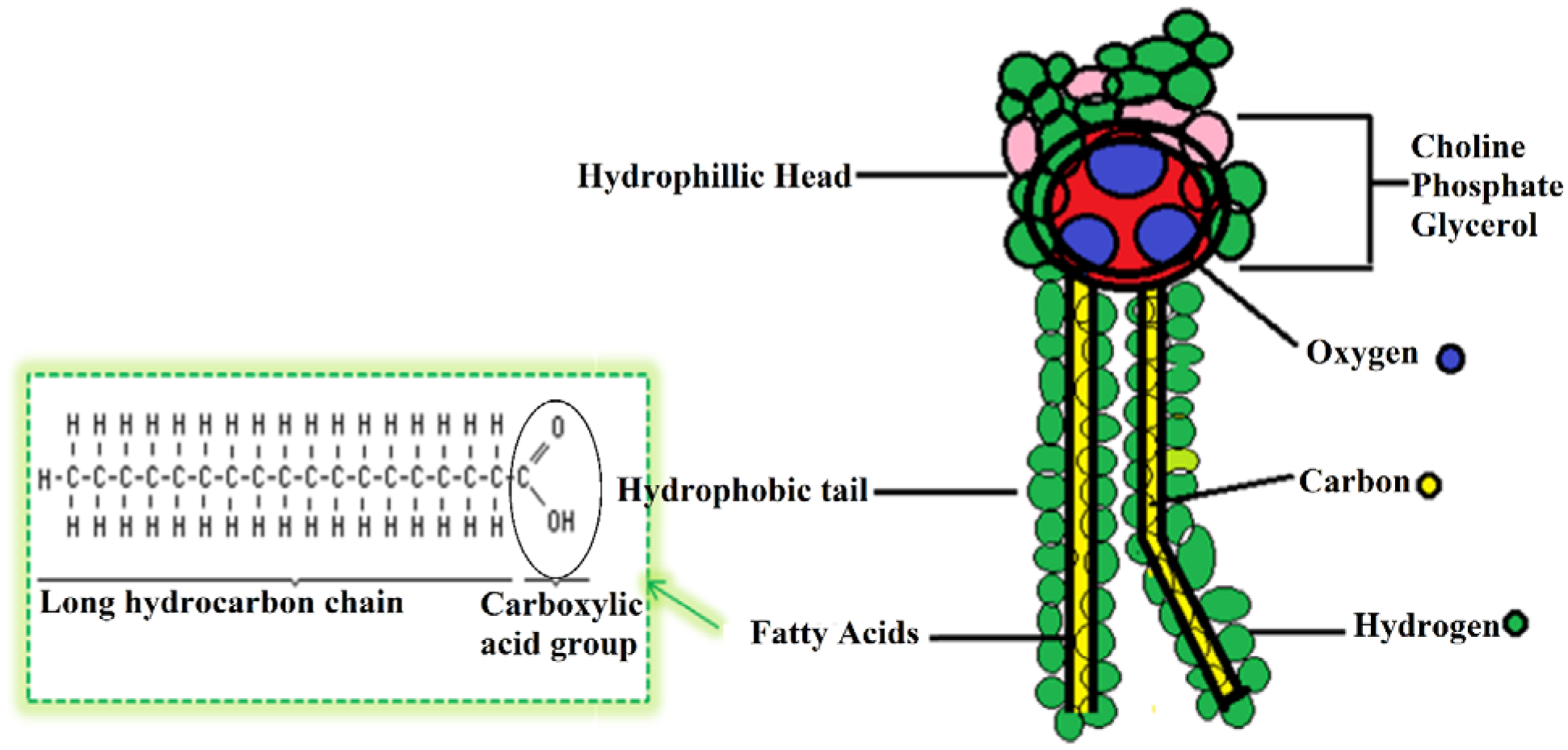 The head of a phospholipid is hydrophilic, while the tail is hydrophobic. In the membrane bilayer, the hydrophobic parts of the molecules are sandwiched in the middle, while the hydrophilic parts form the surface of the bilayer. Phospholipid's hydrophilic heads are present on both outer sides of the bilayer, thus attracting water present inside the cell and outside the cell. On the other hand, the hydrophobic parts of phospholipid molecules sandwich themselves inside the bilayer [25,26]. These self-organized bilayers give shape to cells, cell organelles and maintain physiochemical properties, generating a domain inside a cell that is essential for protein interaction and functioning [27]. The differentiation in head group, aliphatic chain and alcohol groups leads to the existence of a wide variety of phospholipids. The different types of phospholipids such as soybean phosphatidyl-choline, synthetic phosphatidylcholine, and hydrogenated phosphatidylcholine are usually used in various types of formulations [28].