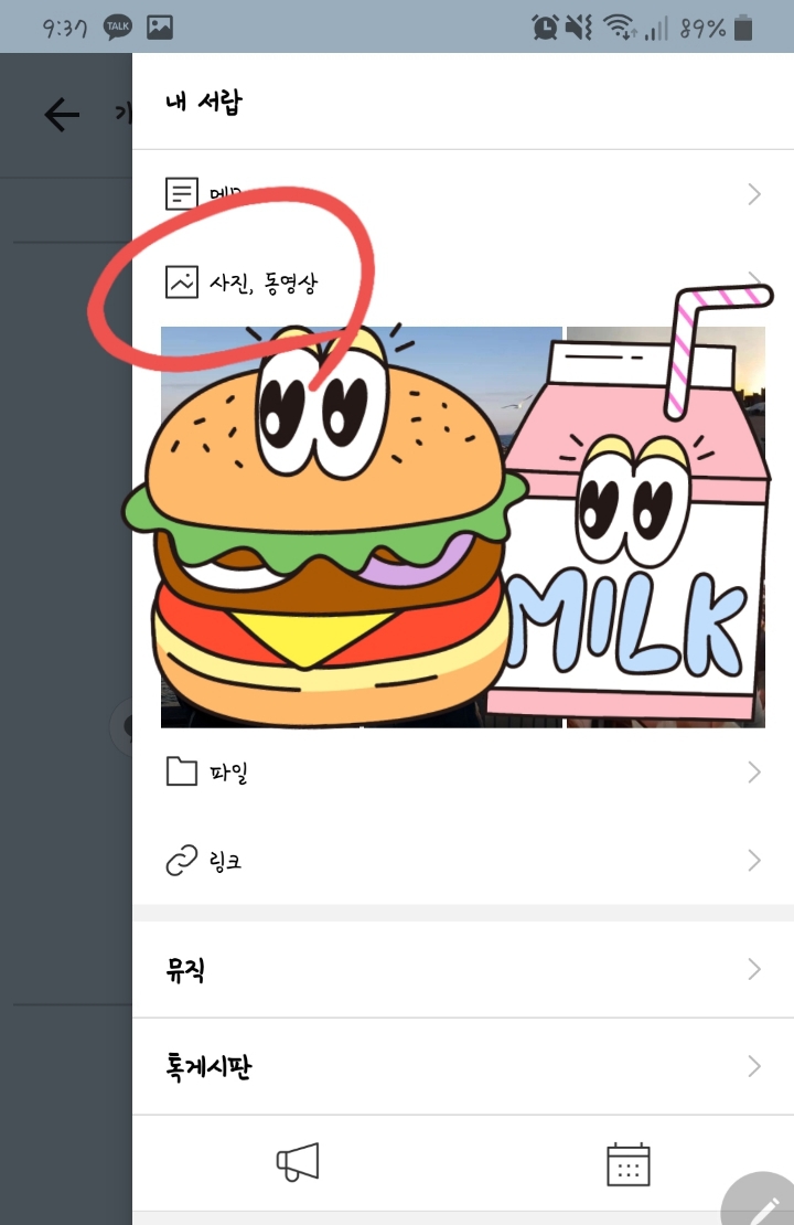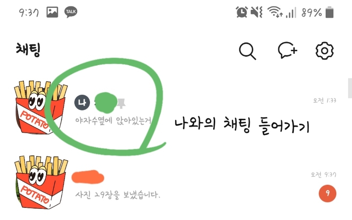 이제 내채팅 사진눌러서 톡서랍눌러야돼!