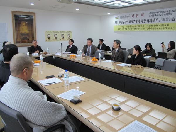 ▲ 불교생명윤리협회는 2월 18일 한국불교역사문화기념관에서 원전 해체의 필요성에 대한 좌담회를 펼쳤다 | 원전 해체에 대한 필요성과 경제적 효용성을 논의하는 자리가 마련됐다. 불교생명윤리협회는 2월 18일 한국불교역사문화기념관 2층 소회의실에서 좌담회를 갖고 핵시설 해체의 필요성과 방법론에 대해 좌담회를 펼쳤다.