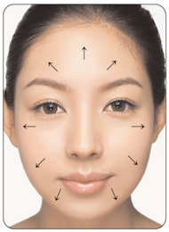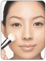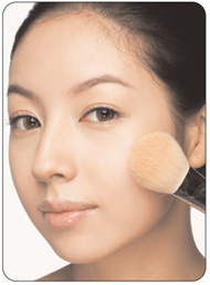 브러시는 얼굴 안쪽에서 바깥쪽으로 사용해라 브러시를 부채질하듯 얼굴 안쪽에서 바깥쪽으로 퍼 바른다. 광대뼈 윗부분에서 시작해서 볼 바깥쪽으로 파운데이션을 바른 다음 눈 밑, 입가, 코 옆은 브러시를 90도로 세워 브러시의 남은 양을 이용해 꼼꼼하게 마무리한다. |