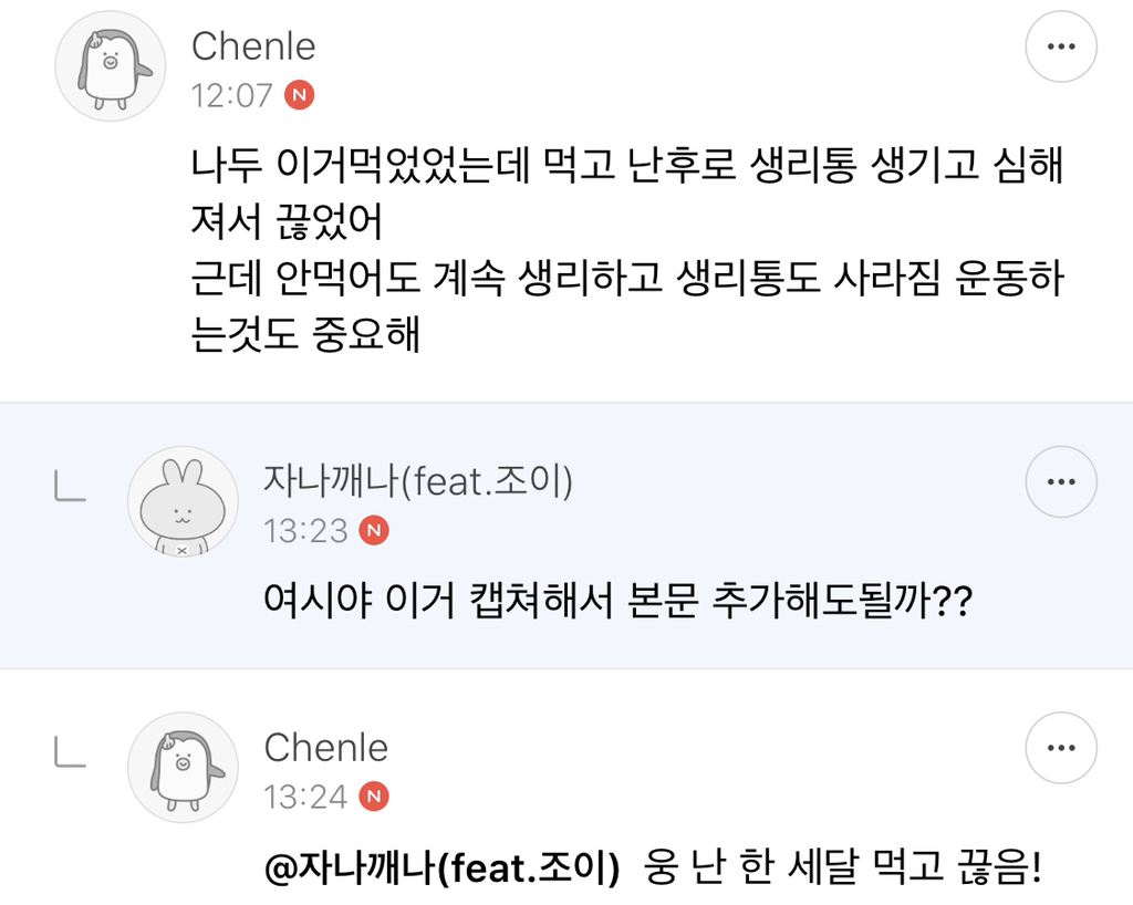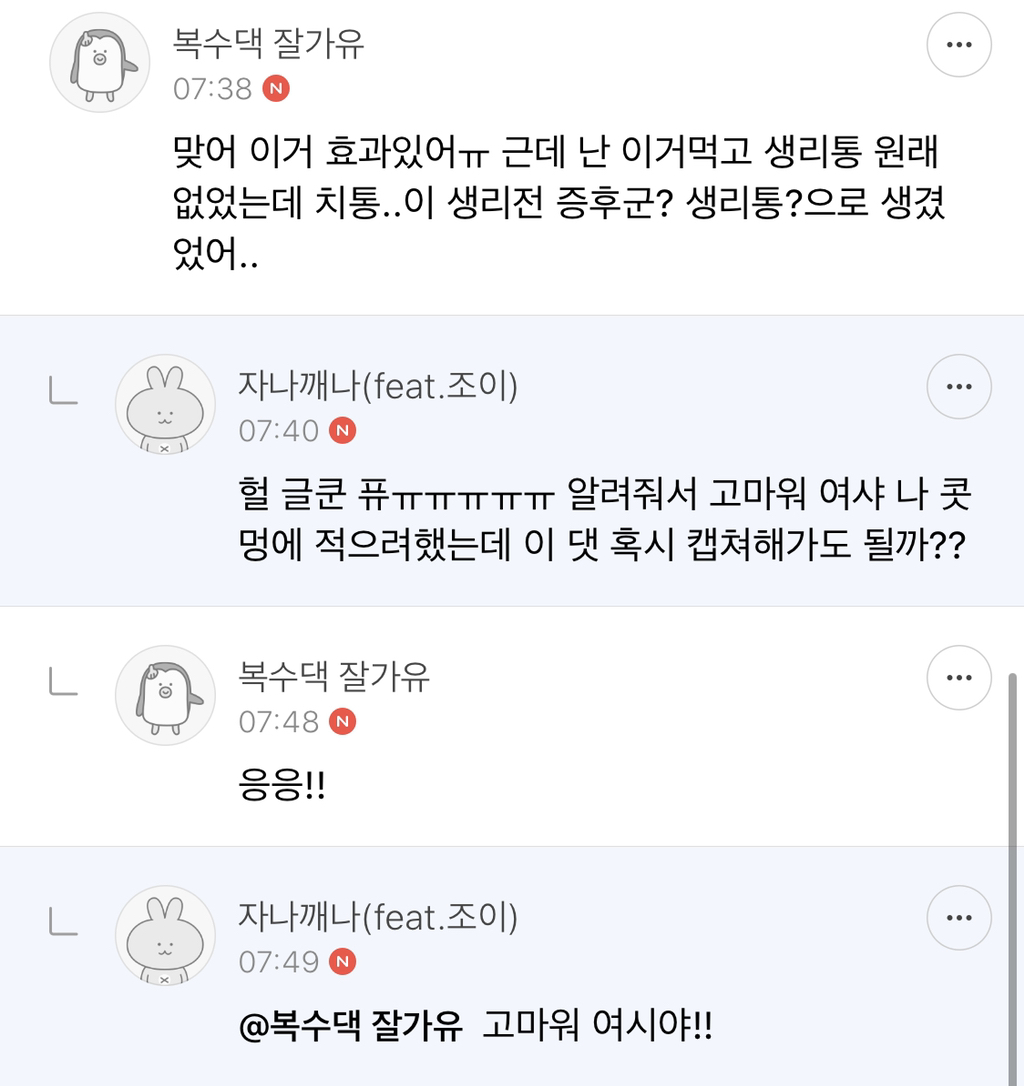 생리통땜에 디질거같지만ㅜㅠ 흑 글써줘서고마워