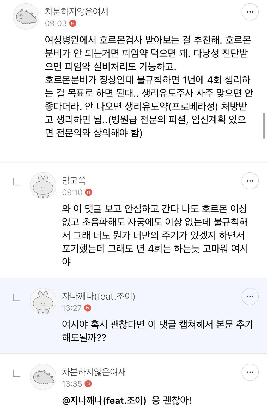 일단 산부인과를 가봐야겠다 ㅠㅠ 고마워 여시야!