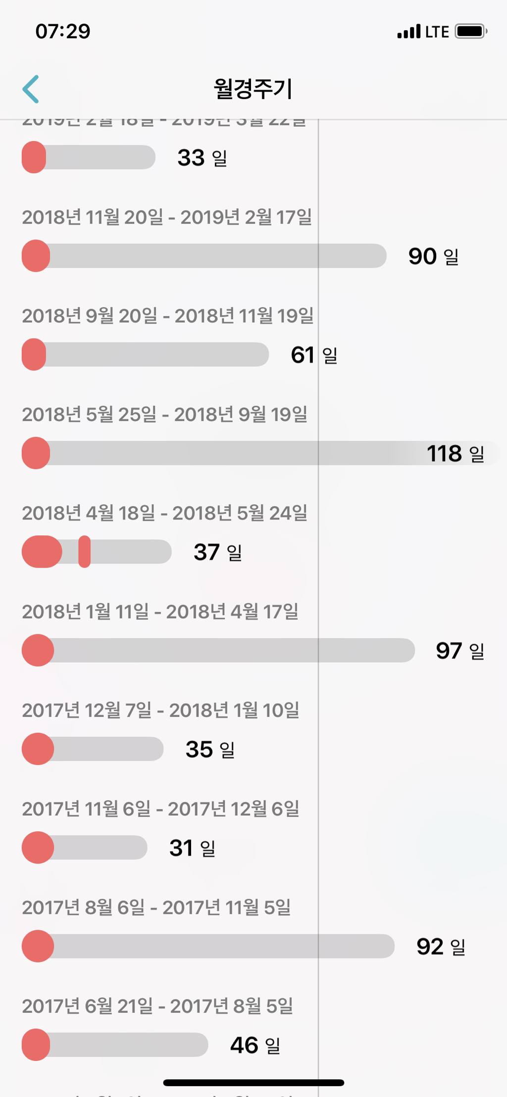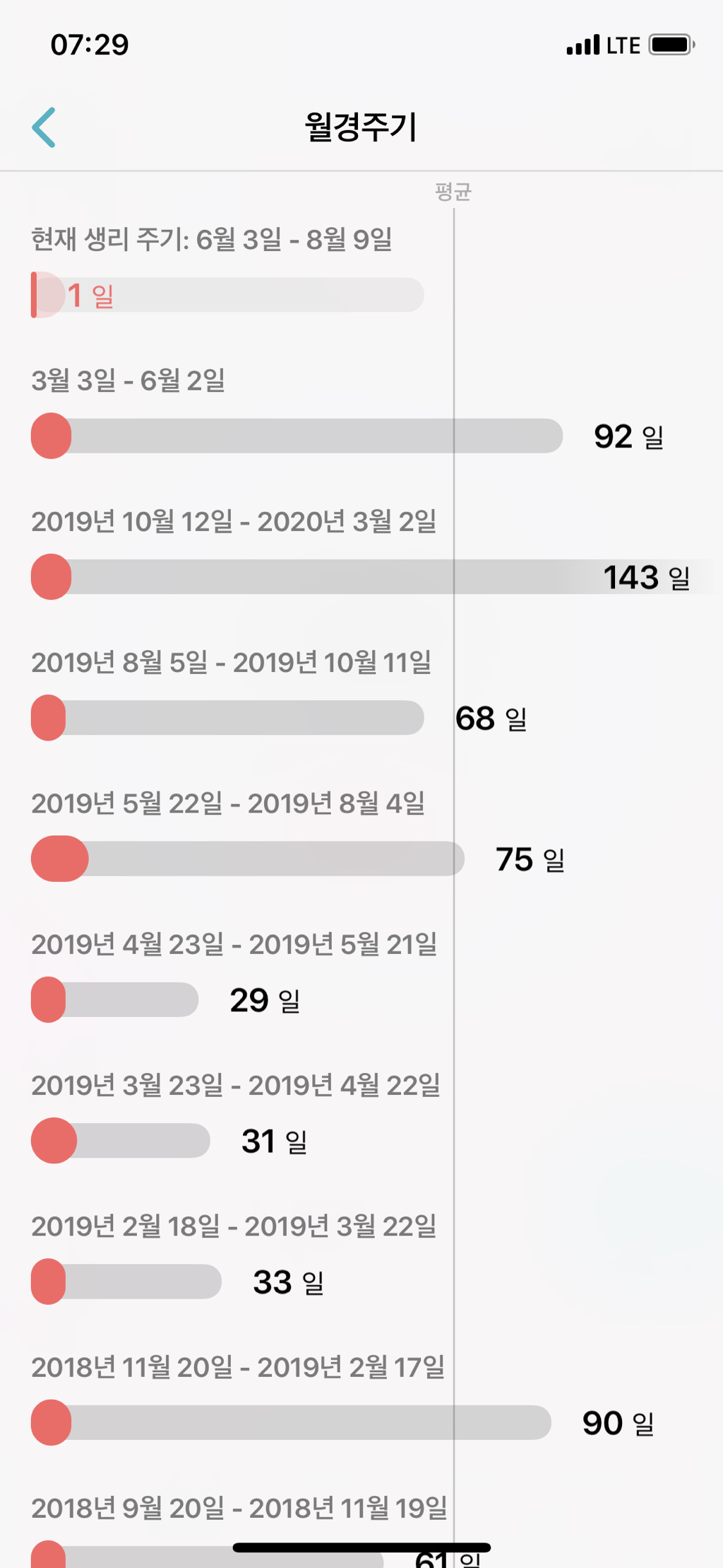 평소 생리 주기 :