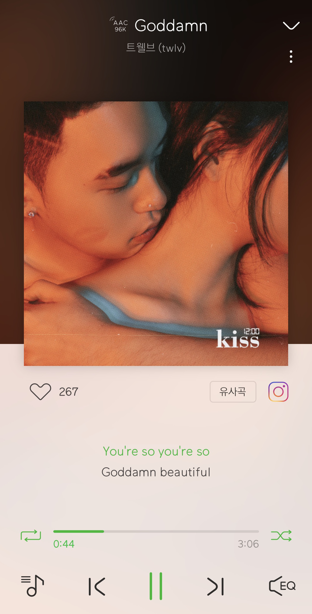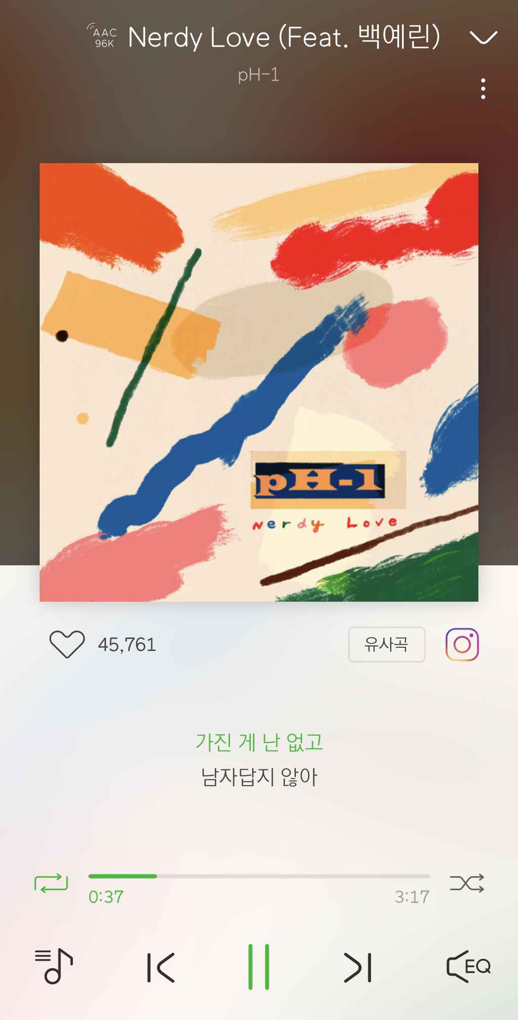 이 노래를 추천해주고 싶어서 뛰어왔다고 해도 과언이 아닐 정도★ 내가 원하는 모든 걸 때려 박은 음악입니다ㅠㅠㅠㅠㅠㅠㅠㅠ피에이치원이 피처링하기도 했고 도입부부터 너무 힙해.. 미처벌임.. 너무 힙해요... 출근 준비하거나 출근할 때 들어줘 엄청 힙한 음악 듣는 사람 같아서 자존감 생김 ㅋ (아무말)