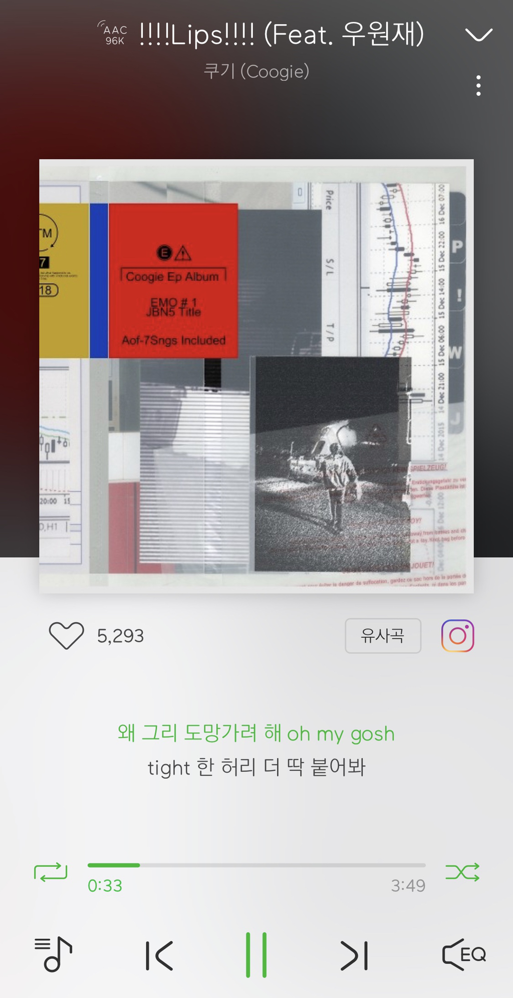 느낌표가 이렇게 많은 노래는 이 노래밖에 없을거야 (아마도) 쿠기 랩하는 스타일 너무 좋아해서 믿고 듣는 노랜데 이 노래도 내가 좋아해서 자주들어 도입부부터ㅠㅠㅠㅠ너무 잘해 가성부분도 넘 좋아