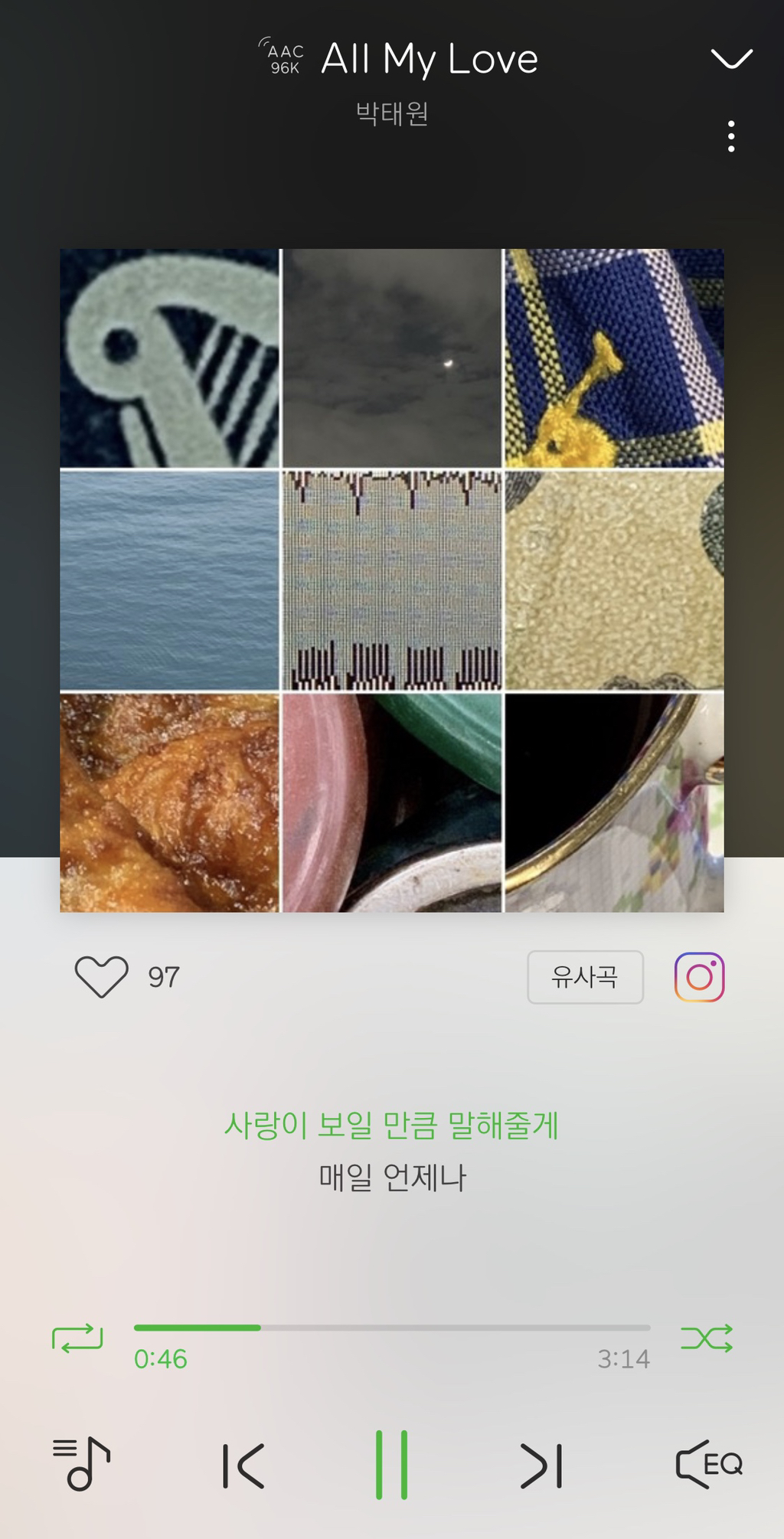 여시야 진짜 너무 고마워 ㅠㅠ오늘 여시덕에 플레이리스트에 새 곡 넣었어...진짜 너무 힐링이야 글써줘서 고마워 ㅠㅠㅠㅠ노래 다 좋아💕좋은하루보내!