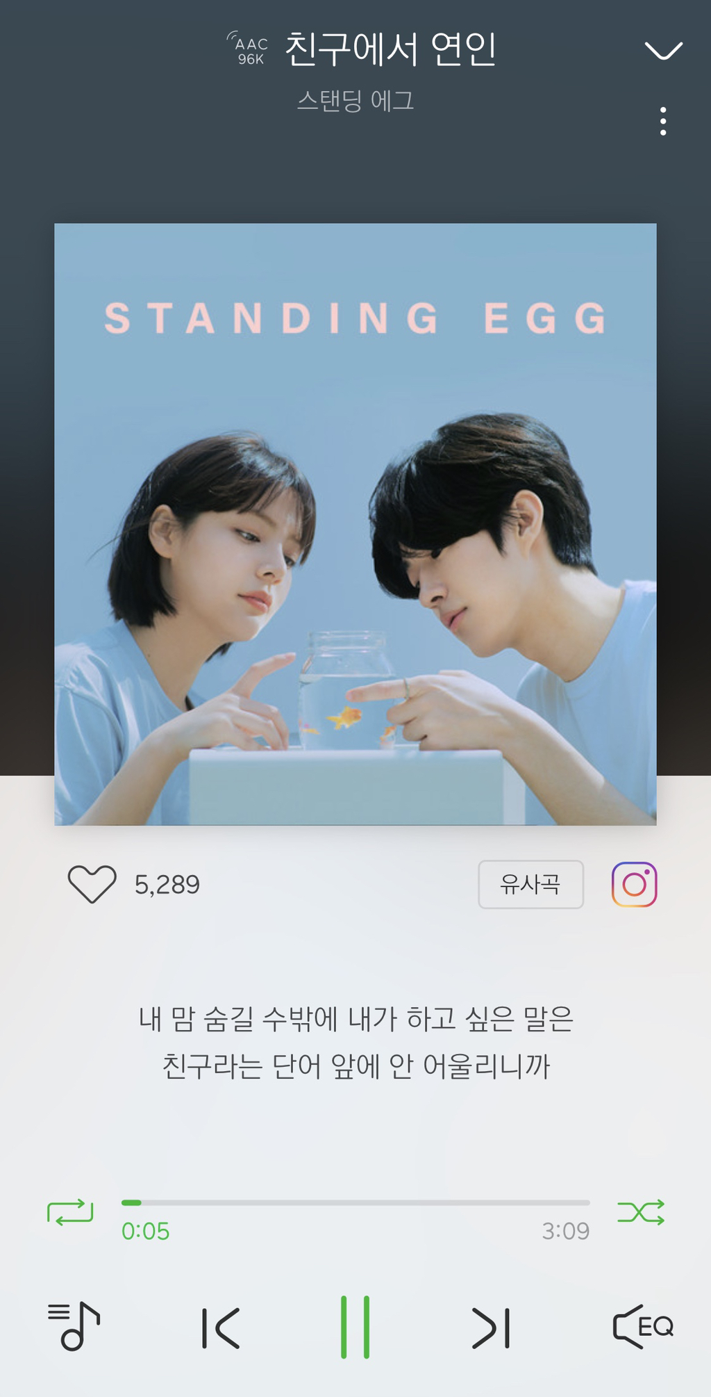 요새 미쳐있는 노래.. 자기전엔 무조건 듣는 노래... 스탠딩 에그 목소리 오지는건 다들 아시죠..? 이번 노래 미쳤습니다ㅠㅠㅠㅠㅠㅠㅠ 마치 내가 지금 친구 짝사랑하고 있는 듯하데 달달하고 간질간질합니다,, 노래 너무 너무 좋아ㅠㅠ