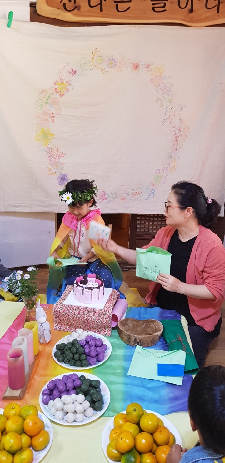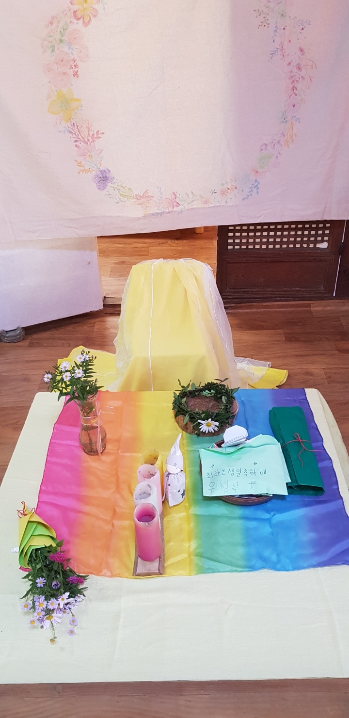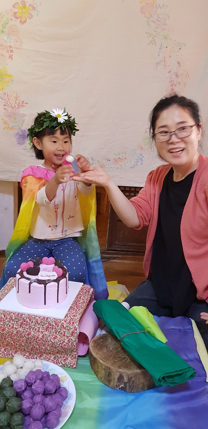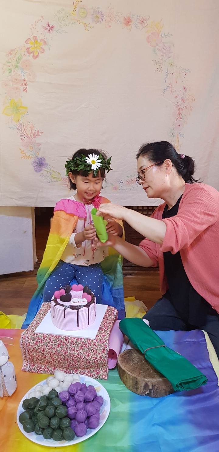 덕담과 함께 무지개 망토를 합니다.