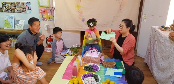 무지개쌤 편지글을 읽어 주십니다.