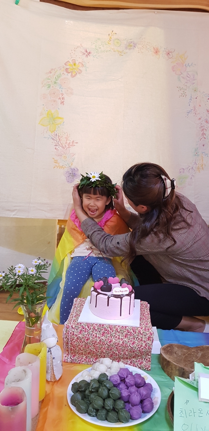 구절초화관이 늠 이쁜데. 가족들이 라온이 보는 표정이 더 예뻐서 놀람.