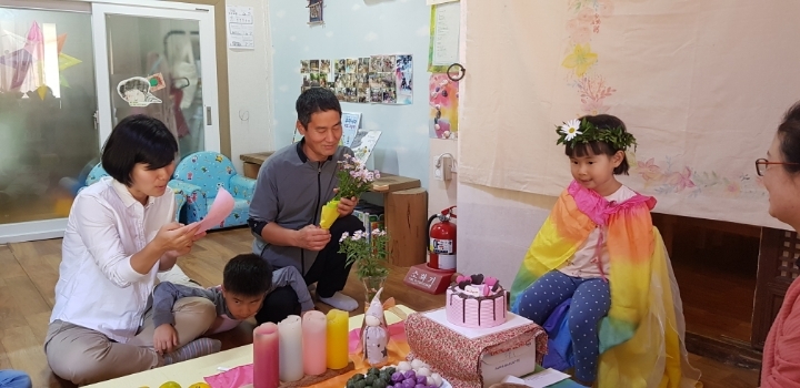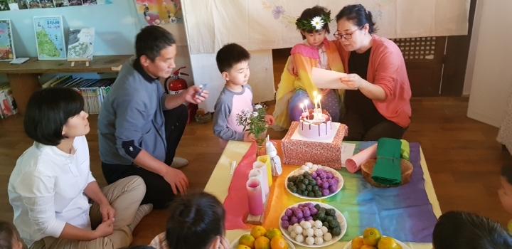 생일 축하 합니다~~~ 노래를 부릅니다.
