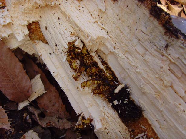 나방유충과 뱀허물쌍쌀벌들이 동면하는 자리 뒷편엔..