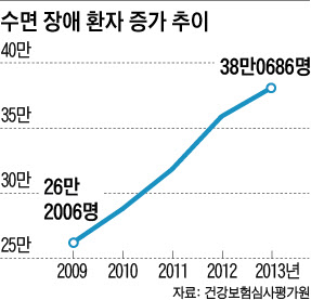 이처럼 숙면은 건강의 근원이지만, 국내에서도 스트레스와 야간 활동 증가, 고령 인구의 증가 등 다양한 이유로 질 좋은 수면을 취하지 못하는 사람이 갈수록 늘고 있다. 2009년 26만여명이던 수면 장애 환자는 2013년 38만여명으로 4년 새 1.5배가량으로 늘었다(건강보험심사평가원). 수면 장애는 잠에 들지 못하거나, 자다 깨다를 반복하거나, 일찍 깨서 다시 잠 못 드는 경우가 하나 이상 있을 때를 말한다. 이런 상태가 질병이나 약물 복용 등 뚜렷한 이유 없이 일주일에 3번 이상 나타날 때는 불면증으로 진단된다.