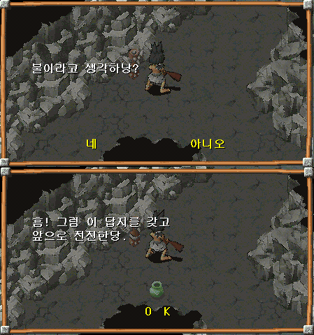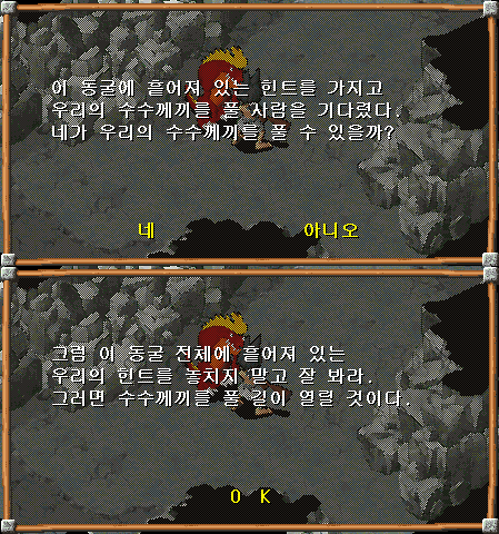 1. 오형제의 동굴(동343, 남191)로 들어가, 입구 바로 앞에 있는 기노와 대화합니다.