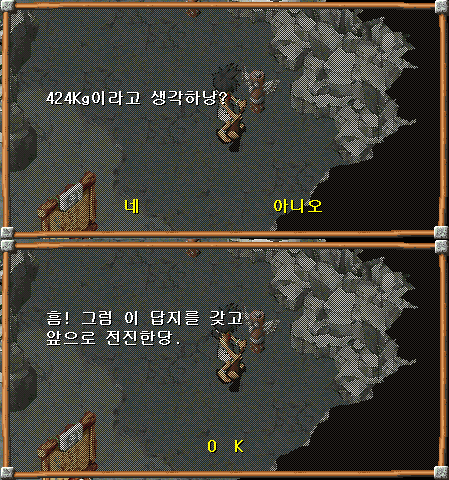6. 워프된 장소로 이동하면 얀기로 등 5마리가 있는데, 그중 가지고 싶은 페트와 대화하여 지식의 결정체를 건네주면 1레벨의 해당페트를 받을 수 있고, 해당 페트에 맞는 아이템도 하나 받을 수 있습니다. 아이템 종류는 아래와 같습니다.