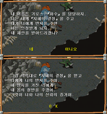 - 얀기로: 기로스의 반지 (공 -3, 매력 +4, 거울의 정령 (기력20 소모)
